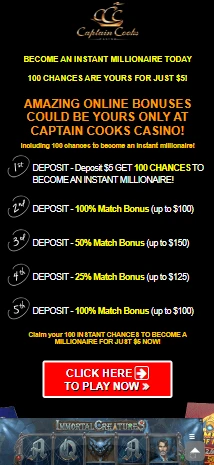 A special offer for New Zealand players at Captain Cooks Casino is the NZ$5 deposit bonus. This deal is for players who want to test out the casino without paying big bucks.