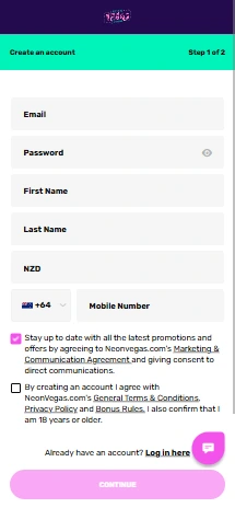 Creating an account at NeonVegas is easy and only takes a couple of minutes.